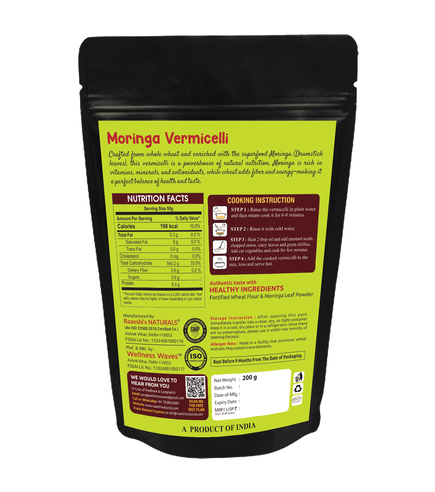 This healthy vermicelli is light on the stomach, easy to cook, and naturally nutrient-dense, making it ideal for the whole family. With its mild earthy flavour and soft texture, moringa vermicelli works perfectly in both traditional Indian recipes and modern healthy meals.