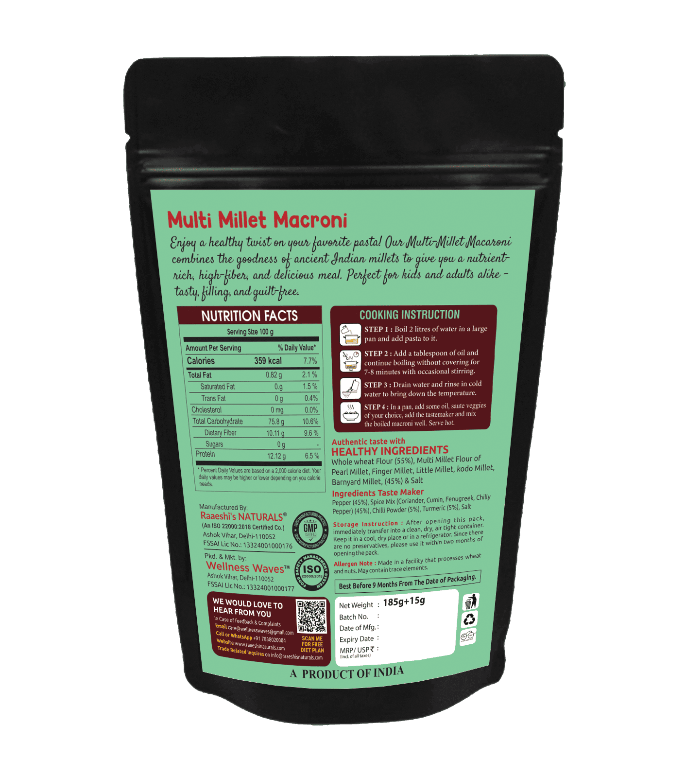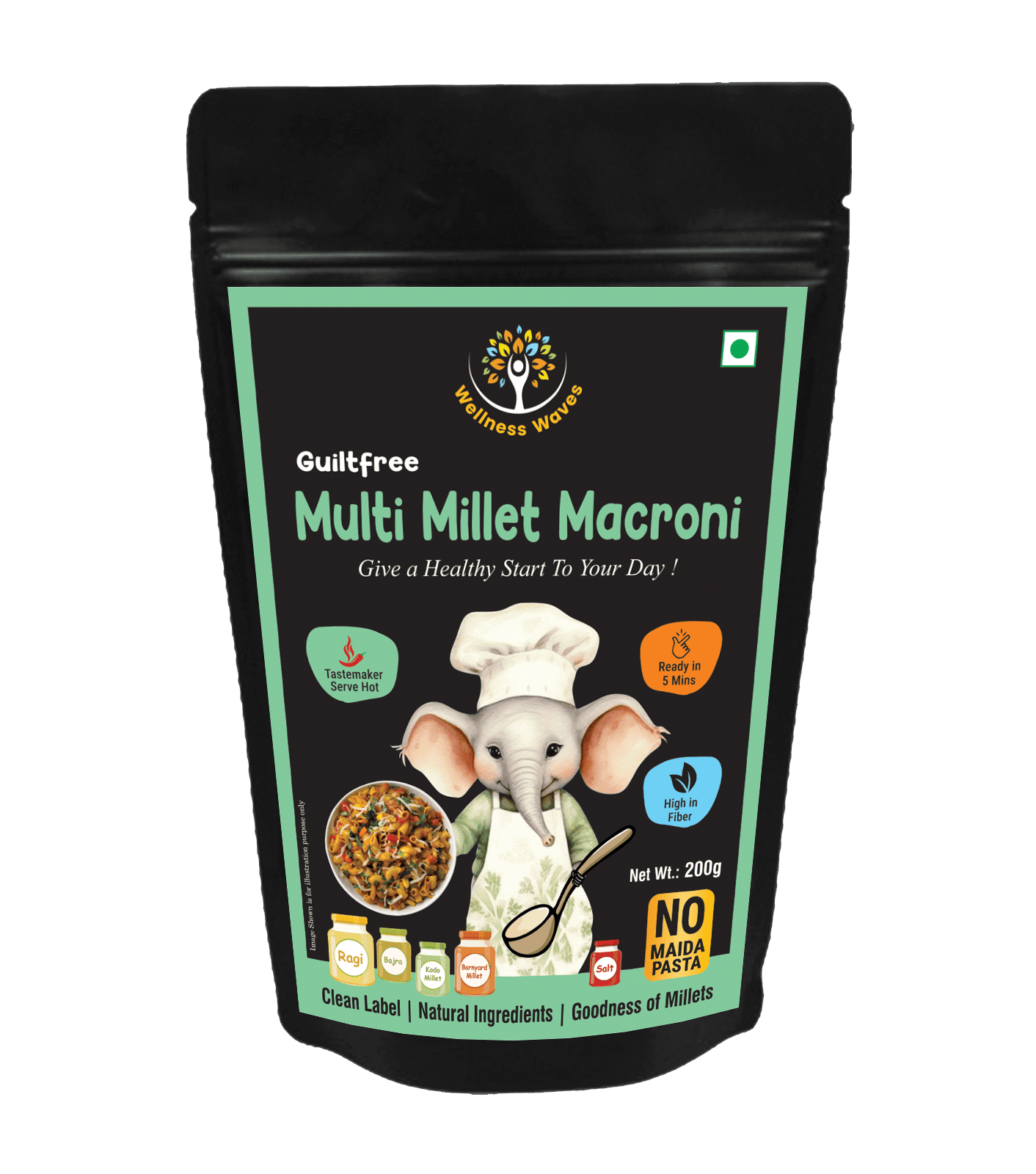 Crafted with a clean-label approach, our multi millet macaroni contains no maida, no artificial colours, and no preservatives, ensuring guilt-free indulgence in every serving.