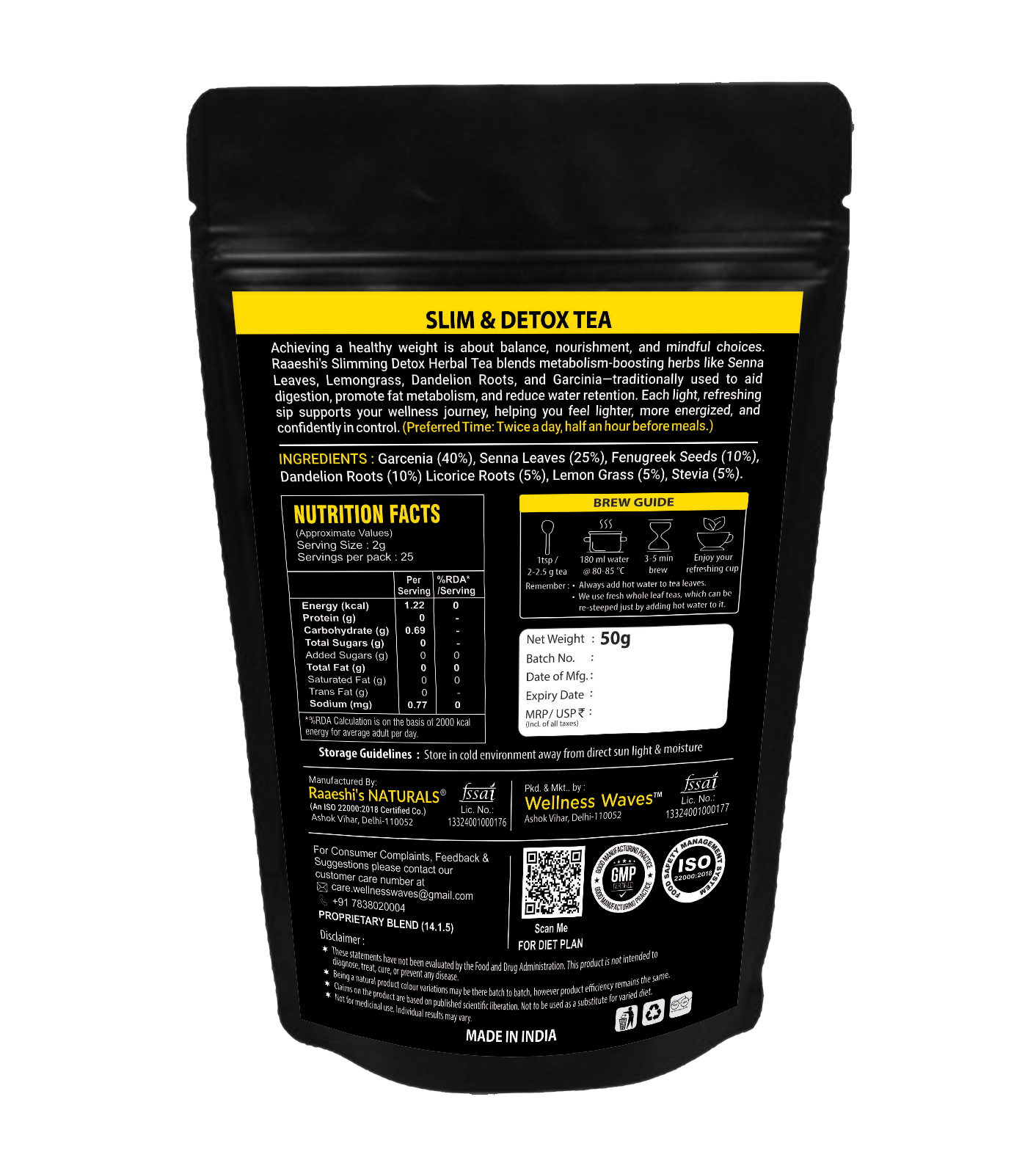 Raaeshi’s Slim & Detox tea is a well-balanced herbal tea blend curated using Garcinia Cambogia and other herbal ingredients such as dandelion roots, senna leaves which help you lose weight naturally without any side effects.